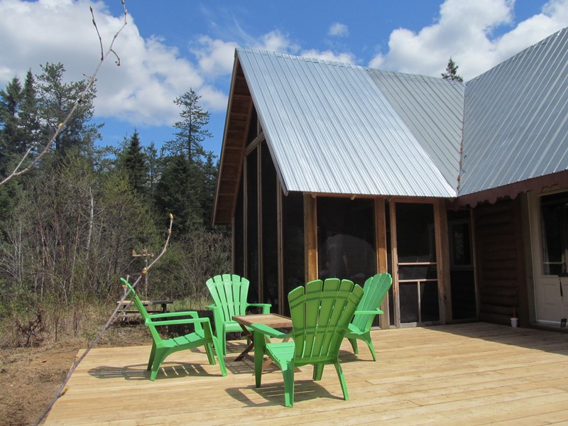 Vous rêvez de grands espaces, de grandes forêts, de tranquillité, de paix. Vous voulez décrocher un peu, relaxer, vous couper quelques temps du monde, oublier l'agitation urbaine. Au chalet, vous n'aurez pas le choix : votre téléphone ne sonnera pas, les courriels ne vous parviendront pas ; à l'écart de tout, rien d'autre ne vous parvient que les bruits de la nature. Vous y serez pourtant en sécurité : un chemin accessible toute l'année vous permet de rejoindre en 20 minutes le village de Saint-Alexis-des-Monts. Vous y retrouverez la chaleur et le confort 3 étoiles d'une maison en bois rond, équipée de l'électricité et d'un téléphone fixe. L'été, baignez vous dans le ruisseau ou à la plage du lac Bernard dans la réserve Mastigouche, parcourez les sentiers de randonnée à pied ou à vélo, pêchez dans les lacs alentour, descendez la rivière du Loup en canot, découvrez les barrages de castors, épiez les animaux au petit matin, débusquez une perdrix ou un chevreuil, trouvez de bons champignons pour votre souper, prenez un verre sur la terrasse sous le ciel étoilé en écoutant le chant des grenouilles ou en admirant les danses des lucioles. En hiver, parcourez la forêt en raquette, suivez les pistes du renard et du lièvre, faites du ski de fond (hors piste), glissez et construisez des forts avec vos enfants, allez faire du patin ou initiez vous à la pêche sur glace au village, partez en traineau à chiens, ou restez bien au chaud à lire autour du foyer dans le salon. Été comme hiver, vous serez détendus.